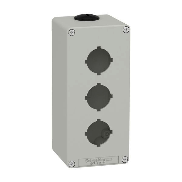 Leergehäuse der Baureihe Harmony XAP. Aus Metall mit Zinklegierung. Farbe: grau, mit einer Bohrung von 3 x 30mm. Größe des Gehäuses: 80x175x77. Mit einer M25 Kabeldurchführung. IP-Schutzklassen bis IP69K und Umgebungstemperaturen von -25°C bis +70°C. Die modularen Harmony Drucktaster Baureihen mit 22mm oder 30mm Einbaumaß kombinieren einfache Installation, Effizienz, modernes Design, Flexibilität mit höchster Robustheit. Produktstandards gem. EN/IEC 60947-5-1, EN/IEC 60947-5-4, CSA C22.2 No 14, UL 508, EN/IEC 60947-1, JIS C 4520. Zertifizierungen nach DNV, GL, UL gelistet, RINA, BV, CSA, LROS (Lloyds register of shipping). Produktstandards gem. EN/IEC 60947-5-1, EN/IEC 60947-5-4, CSA C22.2 No 14, UL 508, EN/IEC 60947-1, JIS C 4520.