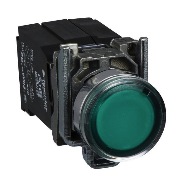 Die Baureihe Harmony XB4 aus Metall bietet eine Vielzahl an 22mm Komplettgeräten wie Drucktaster, Leuchtmelder und Wahlschalter bis hin zum Not-Aus-Schalter. Zusätzlich ist es durch den modularen Aufbau der Geräte möglich, alle Bestandteile auch als Einzelelemente zu beziehen sowie wahlweise auch für 30mm Einbaumaß. Aufgrund der Qualität, der Flexibilität und der extremen Robustheit (Schutzklassen bis IP69K) eignen sich die Geräte ideal für die meisten Anwendungen in der Industrie und in Gebäuden. Dieser Leuchtdrucktaster in der Farbe grün beinhaltet eine Glülampe BA9s und benötigt eine Versorgungsspannung von 230V AC. Der Taster verfügt über 1 Schließer und 1 Öffner. Montiert in einer 22mm Bohrung erfolgt der Anschluss des Geräts durch Schraubklemmen auf der Rückseite des Produkts. Aufgrund der Vielzahl von vorhandenen Produktstandards und Zertifizierungen geeignet für den internationalen Einsatz. Dank des Green Premium Umweltzeichens können Sie detaillierte Informationen zu Materialinhalten, Umweltauswirkungen und Kreislaufwirtschaft erhalten, die Ihre Nachhaltigkeitsziele unterstützen.