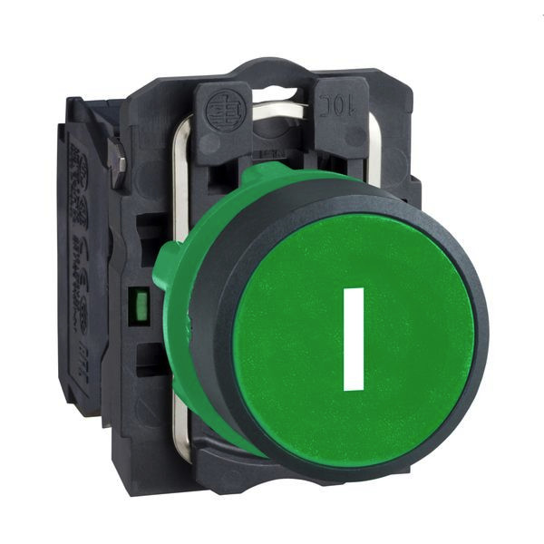 | Kurzbeschreibung | Drucktaster, Harmony XB5, Kunststoff, grün, beschriftet I, 22mm, tastend, 1S |