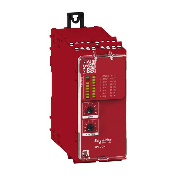 | Kurzbeschreibung | Sicherheitsrelais, Harmony XPSU, 8Funktionen, 6Kreise, PLe/Kat4/SIL3, 3S 1Ö, Diagnose, 24VAC/DC, Schraub |