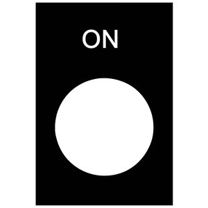 Beschriftete Bezeichnungsschild mit einer Beschriftung ON, 30 x 40 mm. Es ist ein Zubehör der Baureihe Harmony XAC Hängetaster für 22-mm-Kunststoff-Signaleinheiten mit Durchmesser.