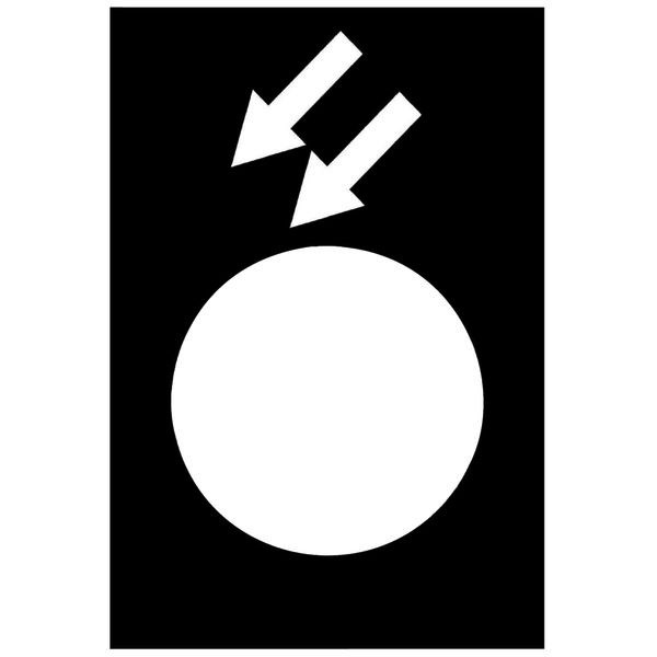 Beschriftete Bezeichnungsschild 30x40mm - schwarz - beschriftet mit umgekehrtem, schnellem Symbol. Es ist ein Zubehör der Baureihe Harmony XAC Hängetaster für 22-mm-Kunststoff-Signaleinheiten mit Durchmesser.
