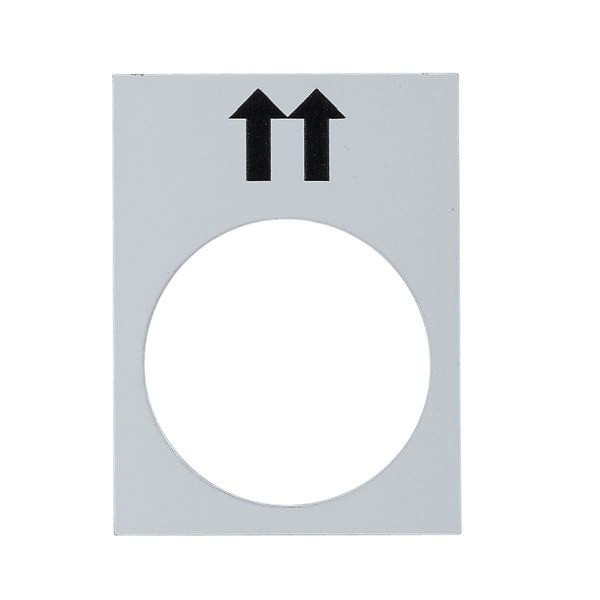 Beschriftete Bezeichnungsschild 30x40mm - weiß - beschriftet mit Heben, schnellem Symbol. Es ist ein Zubehör der Baureihe Harmony XAC Hängetaster für 22-mm-Kunststoff-Signaleinheiten mit Durchmesser.