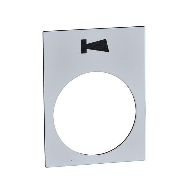 Beschriftete Bezeichnungsschild 30x40mm - weiß - mit Hupe-Symbol gekennzeichnet. Es ist ein Zubehör der Baureihe Harmony XAC Hängetaster für 22-mm-Kunststoff-Signaleinheiten mit Durchmesser.