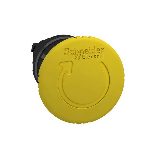 | Kurzbeschreibung | Pilzdrucktaster, Frontelement, Harmony XB4, Metall schwarz, 22mm, gelb, Pilz 40mm, Drehentriegelung |