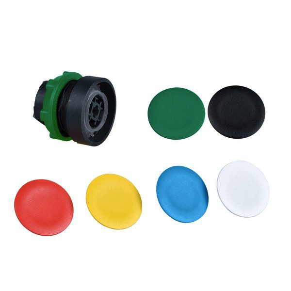 | Kurzbeschreibung | Drucktaster, Frontelement, Harmony XB5, Kunststoff, 22mm, 6 farbige Tastenschilder, unbeschriftet, tastend |