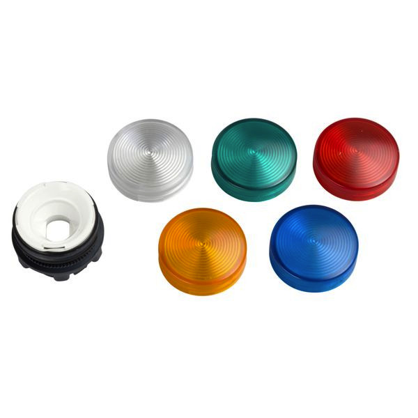 | Kurzbeschreibung | Leuchtmelder, Frontelement, Harmony XB5, Kunststoff, 22mm, 5 farbige Kalotten, für universelle LED, geriffelte Kalotte |