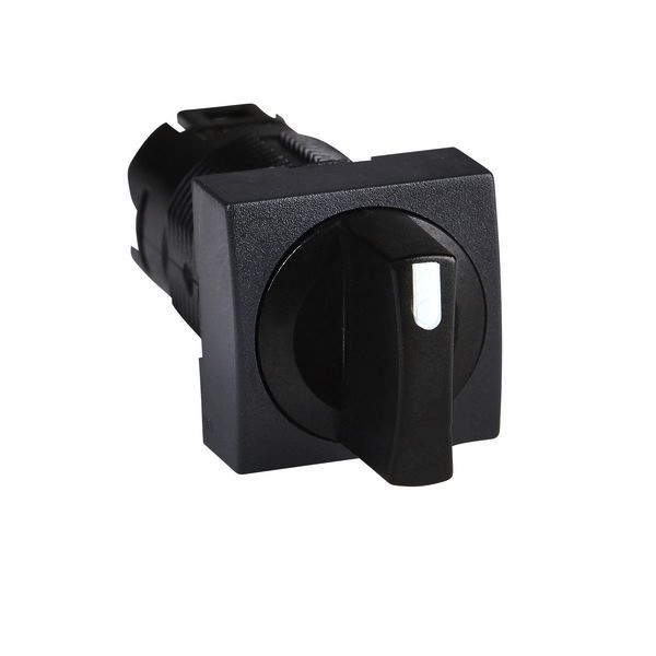 Frontelement für Wahlschalter Harmony ZB6. Blende Kunststoff. 2 Positionen 90°. Abmessung (BxHxT) 18x18x43 mm, Montagedurchmesser 16 mm, Gewicht 0,018 kg. Kopfform quadratisch. Mit hoher Vibrationsfestigkeut und chemischer Beständigkeit, Umgebungstemperatur -40 bis +70 Grad C. Das Kunststoffprogramm mit 16mm Einbaumaß verbindet einfache Montage mit großer Flexibilität bei kleinstem Platzbedarf. Zertifizierungen nach UL, CCC, GOST, CSA. Produktstandards gem. EN/IEC 60947-1, UL 508, JIS C 4520, EN/IEC 60947-5-5, CSA C22.2 No 14, EN/IEC 60947-5-1, JIS C 852.