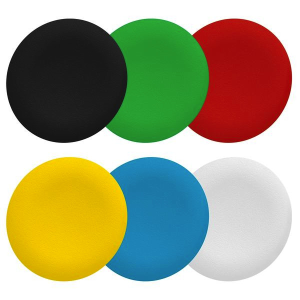 Set aus 6 verschieden farbigen Tastenschildern für Drucktaster 30mm Durchmesser. Frontelement für den bündigen,flachen Einbau. Mit höchster Robustheit für die Industrie konzipiert.