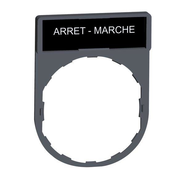 Kunststoff Schildträger 30x40mm kompatibel mit den 22mm Harmony Baureihen XB4 und XB5. Mit Schild und Beschriftung ARRET-MARCHE. Die Farbe des Schildträgers ist grau. Die modularen Harmony Baureihen mit 22mm Einbaumaß kombinieren einfache Installation, Effizienz, modernes Design, Flexibilität mit höchster Robustheit.