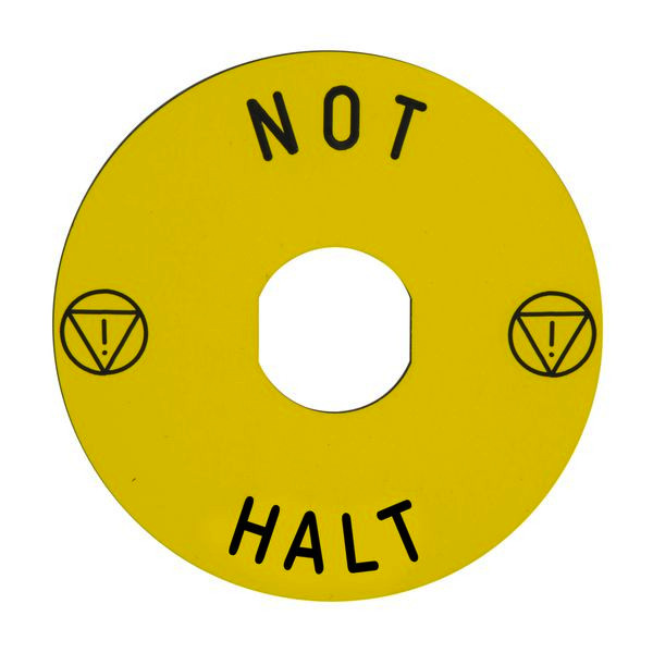 | Kurzbeschreibung | Schild, rund Ø 90, für Not-Halt/Not-Aus-Drucktaster, gelb, NOT-HALT |
