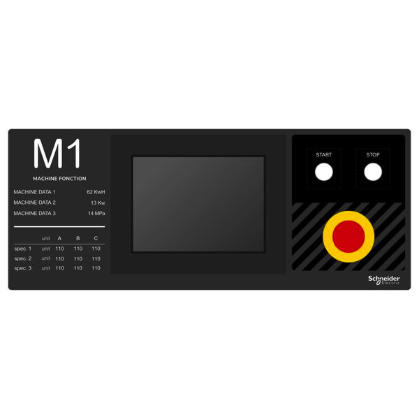 Beschriftungsfeld/Legendenfeld zum Aufkleben hinter die Befehls- und Meldegeräte wie z.B. Drucktaster, Leuchtmelder, Wahlschalter aber auch HMIs oder weitere Steuergeräte. Größe 500x200mm. Das Beschriftunsgfeld hat eine bereits vorgefertigte Beschriftung bzw. Layout. Mit der Kombination des Beschriftungsfeldes und den modernen Befehls- und Meldegeräten der Baureihe Harmony sorgt man für einen attraktiven, neuen Stil.