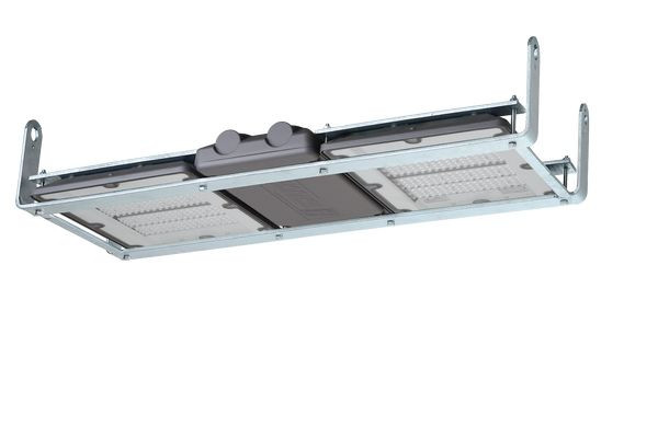 LED-Hallenleuchte, DUEVO, 270 W, 40400 lm, SKI, IP65, tief-breitstrahlend, 4000 K, Ra= 80, Ta -40 °C/+50 °C, L70>100000 h (@ Ta max), L80>100000 h (@Ta 25°C), DALI (DIMD), Scheibe Sicherheitsglas klar, Gehäuse Alu-Druckguss, Lackiert, Farbe grau, DB 702, für Verzinkereien u. Galvanikbetriebe (V), für Räume mit erhöhter Brandgefahr (D), EAN/GTIN:4041254383422.LED-Hallenleuchte DUEVO der GreenLine-Serie mit herausragend nachhaltiger Produktgestaltung für Verzinkereien und Galvanikbetriebe. Gehäuse aus pulverlackiertem Aluminium-Druckguss, mehrteilig, thermisch getrennt. Gerätegehäuse mit eingebautem Betriebsgerät, anschlussfertig verdrahtet, glatte Oberfläche ohne Kühlrippen. Zwei LED-Gehäuse mit LED-Modulen, rahmenlosem, flachem Sicherheitsglas, thermisch gehärtet, Gehäuseoberseite mit flacher Kühlrippenstruktur. Zhaga-konforme LED-Module, Multi-Layer Technologie, mit direkter Anbindung an das Gehäuse zur Gewährleistung eines optimalen Thermomanagements. EVG mit Überlast- und Kurzschlussschutz. Stabiler Tragrahmen mit Winkelprofilen zur Aufhängung.