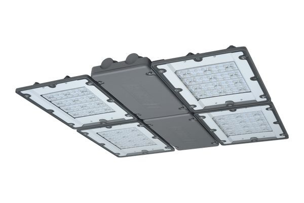 LED-Hallenleuchte, DUEVO XL, 384 W, 60000 lm, SKI, IP65, tief-breitstrahlend, 4000 K, Ra= 80, Ta -25 °C/+60 °C, L70>100000 h (@ Ta max), L80>100000 h (@Ta 25°C), Scheibe Sicherheitsglas klar, Verschluss Edelstahl (1.4301), Gehäuse Alu-Druckguss, Lackiert, Farbe grau, DB 702, Achtung: Leuchte besteht aus 2 Packstücken, für Räume mit erhöhter Brandgefahr (D), Lieferzustand: teilmontiert!, EAN/GTIN:4041254315713.LED-Hallenleuchte DUEVO XL der GreenLine-Serie mit herausragend nachhaltiger Produktgestaltung. Gehäuse aus pulverlackiertem Aluminium-Druckguss, mehrteilig, thermisch getrennt. Zwei Gerätegehäuse mit eingebautem Betriebsgerät, anschlussfertig verdrahtet, glatte Oberfläche ohne Kühlrippen. Vier LED-Gehäuse mit LED-Modulen und hocheffizienten Optiken, rahmenlosem, flachem Sicherheitsglas, thermisch gehärtet, Gehäuseoberseite mit flacher Kühlrippenstruktur. Zhaga-konforme LED-Module, Multi-Layer Technologie, mit direkter Anbindung an das Gehäuse zur Gewährleistung eines optimalen Thermomanagements. EVG mit Überlast- und Kurzschlussschutz. Befestigung siehe "Optionales Zubehör".
