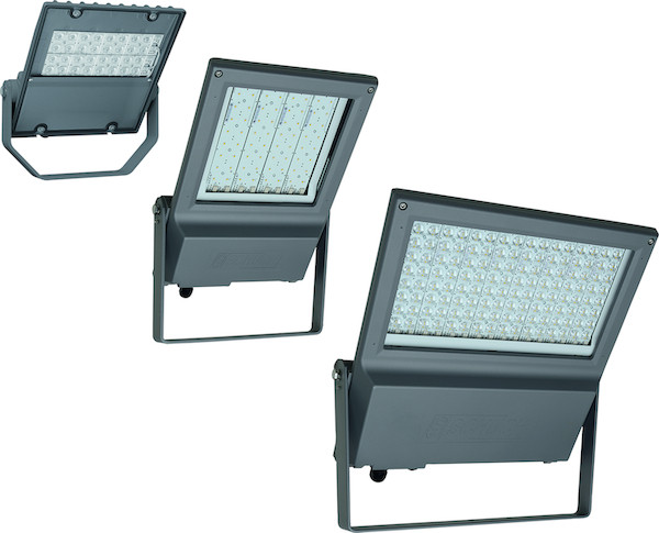 LED-Scheinwerfer, FOCO, 16 W, 70 W, 2740 lm, 11170 lm, SKI, IP66, breitstrahlend, 4000 K, Ra= 70, Ta -40 °C/+50 °C, L90>100000 h (@ Ta max), Scheibe Sicherheitsglas klar, Gehäuse Alu-Druckguss, Lackiert, Farbe grau, DB 702, variabel und nahezu stufenlos einstellbarer Lichtstrom (Achtung: Es sind nur Min, Max-Werte angegeben), EAN/GTIN:4041254329321.LED-Scheinwerfer FOCO VARIO der GreenLine-Serie mit herausragend nachhaltiger Produktgestaltung mit variabel einstellbarem Lichtstrom. Pulverlackiertes Aluminiumdruckgussgehäuse mit integrierten LED-Modulen und EVG, Schalter zum werkzeuglosen Einstellen des Lichtstroms im Anschlussraum, flachem, temperaturwechselbeständigem Sicherheitsglas, Kabeleinführung und Zugentlastung. Zhaga-konforme LED-Module, direkt strahlend, Multi-Layer Technologie. EVG mit hoher Stoßspannungsfestigkeit, Überlast- und Kurzschlussschutz. Befestigungsbügel um 180° schwenkbar.