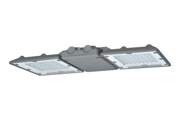 EX-LED-Hallenleuchte, ExDUEVO, EX-Zone 2/22, 192 W, 30000 lm, SKI, IP65, tief-breitstrahlend, 4000 K, Ra= 80, Ta -20 °C/+50 °C, L80>60000 h (@ Ta max), L80>100000 h (@Ta 25°C), L70>90000 h (@Ta >50°C), L70>100000 h (@Ta =50°C), DALI (DIMD), Scheibe Sicherheitsglas klar, Verschluss Edelstahl (1.4301), Gehäuse Alu-Druckguss, Lackiert, Farbe grau, DB 702, EAN/GTIN:4041254325392.Explosionsgeschützte LED-Hallenleuchte ExDUEVO der GreenLine-Serie mit herausragend nachhaltiger Produktgestaltung für Zone 2/22. Gehäuse aus Aluminiumdruckguss, mehrteilig, thermisch getrennt, pulverlackiert, bestehend aus: Gerätegehäuse mit eingebautem Betriebsgerät und glatter Oberfläche sowie zwei LED-Gehäusen mit LED-Modulen, rahmenlosen flachen Sicherheitsgläsern, thermisch gehärtet, Gehäuseoberseiten mit flacher Kühlrippenstruktur. LED-Module direkt strahlend, Multi-Layer-Technologie, mit direkter Anbindung an das Gehäuse zur Gewährleistung eines optimalen Thermomanagements. EVG mit Überspannungs-, Überlast-, Übertemperatur- und Kurzschlussschutz sowie DALI-Schnittstelle für Dimmbetrieb.