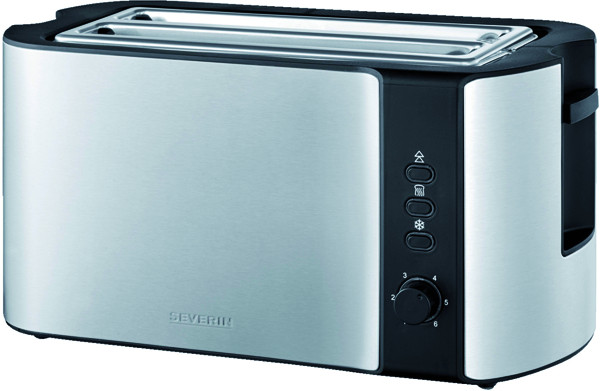 einstellbarer Bräunungsgrad, Röstzeitelektronik mit Temperatursensor, integrierter Brötchen-Röstaufsatz, Defroster-Stufe mit Kontrollleuchte, Aufwärmstufe ohne zusätzliche Bräunung mit Kontrollleuchte, Auslösetaste mit Kontrollleuchte, Krümelschublade, automatische Abschaltung bei Verklemmen einer Brotscheibe, wärmeisoliertes Gehäuse aus Edelstahl
