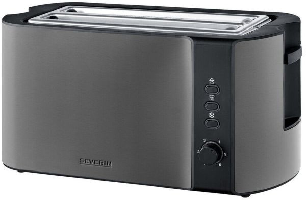 einstellbarer Bräunungsgrad, integrierter Brötchen-Röstaufsatz, Defroster-Stufe mit Kontrollleuchte, Aufwärmstufe ohne zusätzliche Bräunung mit Kontrollleuchte, Auslösetaste mit Kontrollleuchte, Krümelschublade, automatische Abschaltung bei Verklemmen einer Brotscheibe, wärmeisolierendes Edelstahl-Gehäuse
