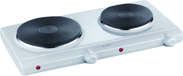 Doppelkochplatte mit 2 Heizringen, 15,5 cm Durchmesser mit ca. 1.000 Watt und 18,5 cm Durchmesser mit ca. 1.500 Watt, stufenlose Temperatureinstellung über 2 voneinander unabhängige Regler, hochhitzebeständige Lackierung, Kontrollleuchten, LxBxH 50 x 29 x 8,5 cm