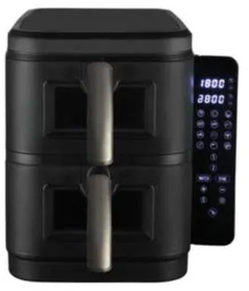 Heißluftfritteuse mit 2 individuell steuerbaren Frittierkörben je 5,5 l Fassungsvermögen, intuitive Touch-Bedienung mit 9 Automatik-Programmen mit LED-Display, einstellbare Temperaturregelung bis 200°C, Timer, Sync Finish sorgt dafür, dass beide Körbe mit einem Abstand von 30 Sekunden fertig werden