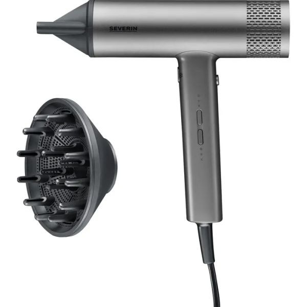 professioneller BLDC-Hochgeschwindigkeitsmotor, 3 Temperatur- und 3 Leistungsstufen, arretierbare Kaltstufe, Ionenfunktion reduziert die statische Aufladung, abnehmbarem Konzentrator, Volumen-Diffusor, abnehmbares Lufteintrittsgitter, Aufhängeöse, elegantes Aluminium-Gehäuse