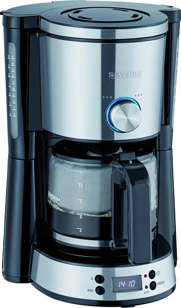 Digitaluhr mit Timerfunktion zur Aktivierung des Brühvorganges, AromaSwitch, beleuchtet, zur Auswahl zwischen 2 Brühprofilen: normaler Kaffee/milder Kaffee, Schwenkfilter mit herausnehmbarem Filtereinsatz 1 x 4 mit Tropfverschluss, Wasserstandsanzeigen, beidseitig und gut sichtbar, Entkalkungsfunktion, automatische Abschaltung nach 40 Min., integriertes Kabelstaufach, hochwertiges Design mit Edelstahl-Applikationen