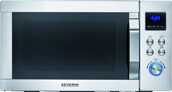 4-in-1 Kombination aus Mikrowelle, Heißluft-Fritteuse, Ofen und Grill, 10 Mikrowellen-Leistungsstufen, 10 Automatikprogramme, Mikrowelle und Grill getrennt und kombiniert schaltbar, Heißluft mit Quick-Start (2150 W), LED-Display, digitaler Timer mit Signalton, Quick-Taste für Sofortstart bei voller Leistung, abstellbarer Tastenton, Drehteller ca. 28 cm Ø, Heißluftkorb, antihaftbeschichteter Pizza-Teller (Ø ca. 28 cm) und Grillrost, Kindersicherung