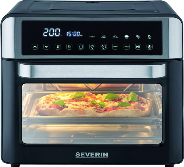 Kombination aus Backofen und Heißluftfritteuse, 12 Voreinstellungen für Pommes, Pizza, Hähnchen, Gemüse und viele weitere Gerichte, inkl. Frittierkorb, Grillrost, Rotisserie, Backblech, Krümelblech und Handgriff für einfache Entnahme, Touch-Display, 40 - 220 °C, Timer