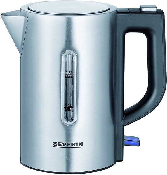 herausnehmbarer, abwaschbarer Kalkfilter, klappbarer Deckel - 1-Hand-Bedienung, Wasserstandanzeige, Trockengeh-/Überhitzungsschutz, 115/230 V umschaltbar, inkl. 2 Kunststofftassen mit Löffeln