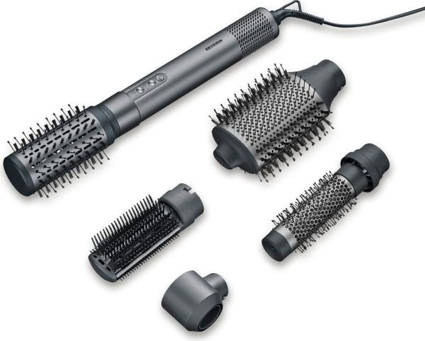 starker BLDC-Motor für Profi-Ergebnisse, 5 Stylingaufsätze: Rundbürsten (50mm), Rundbürsten (30mm), ovaler Aufsatz /70mm) - für voluminöse und dynamische Styles, Paddelbürstenaufsatz - für geschmeidige, glatte Styles, schmale Konzentrator, 3 Leistungsstufen, integrierte Ionic-Funktion reduziert Frizz und sorgt für eine glatte, glänzende Oberfläche, Selbstreinigungsfunktion, elegantes Aluminium-Gehäuse