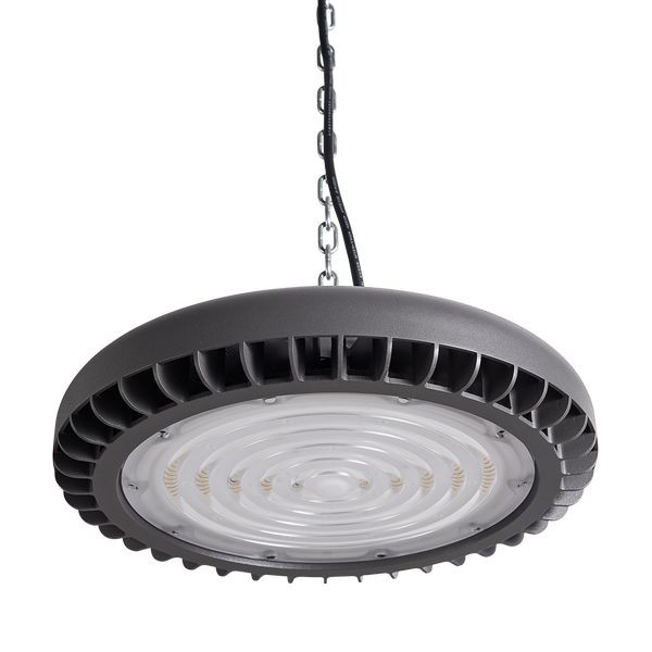 Kraftvolle ?High bay?-Leuchte für Lager- und Industrieobjekte, die sich dank ihres stilechten Designs und verschiedener Lumenausführungen auch für andere Anwendungsbereiche eignet. Bequemes Montieren dank Karabinerhaken zum Befestigen an der Kette (nicht im Lieferumfang enthalten) oder mithilfe der Decken-/Wandwinkel mit Hakenvorrichtung.Das Licht wird gezielt für eine Verteilung im 88 (97W) / 86 (197W)-Grad-Winkel ausgerichtet. Sehr hohe Lumenleistung. Die Bauteile halten sehr niedrigen Temperaturen (-40OC) stand und gewährleisten so eine extrem lange Lebensdauer.