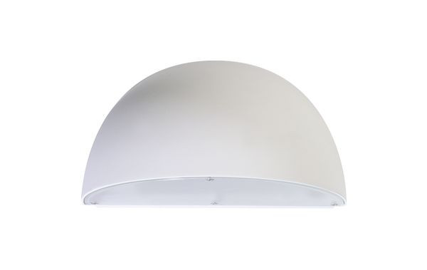 Halbmondförmige Wandleuchte, die außen und innen montiert werden kann. Aus pulverbeschichtetem Druckgussaluminium. Abschirmung aus UV-stabilisiertem Opal-Polycarbonat. Zwei Kabeleinführungen, Möglichkeit für sichtbare oder verborgene Kabelführung, sowie Steckklemmen mit Möglichkeit zur Durchverdrahtung.