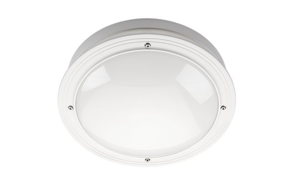 Runde Leuchte mit integriertem LED-Modul, die sowohl in Außen- als auch in Innenbereichen an Wänden und Decken montiert werden kann. Aus pulverbeschichtetem Druckgussaluminium. Flache Abdeckung aus UV-stabilisiertem Opal-Polycarbonat. 2 Kabeleinführungen zur Durchgangsverdrahtung.Design: Svein Knudsen / Andrew Smith