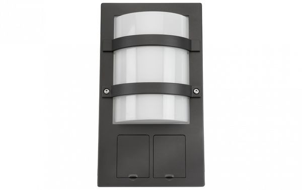 Design: Hallvard Jakobsen. Stoßfeste Wandleuchte mit dekorativen Schutzstreifen für den Außengebrauch. Die Trio Socket verfügt über zwei praktische Stromausgänge. Damit eignet sie sich perfekt für den Heizpilz auf der Veranda, den Hochdruckreiniger im Carport und alle anderen Orte, an denen Sie sich schon immer eine zusätzliche Steckdose gewünscht haben.Einfaches Anschließen mit Schnellklemmen und zwei Ein-/Ausgängen für Kabel. Sichtbare oder verborgene Kabelführung möglich.