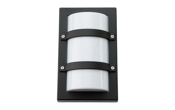 Design: Hallvard Jakobsen. Viereckige Wandleuchte mit zusätzlichem Schutz der Abdeckung. Aus pulverlackiertem Druckgussaluminium. Abdeckung aus UV-beständigem Polycarbonat. Zwei Kabeleinführungen, Möglichkeit für sichtbare oder verborgene Kabelführung, sowie Steckklemmen mit der Möglichkeit zur Durchverdrahtung.