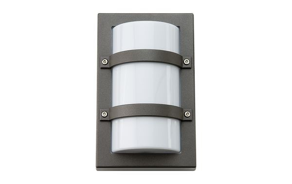Design: Hallvard Jakobsen. Viereckige Wandleuchte mit zusätzlichem Schutz der Abdeckung. Aus pulverlackiertem Druckgussaluminium. Abdeckung aus UV-beständigem Polycarbonat. Zwei Kabeleinführungen, Möglichkeit für sichtbare oder verborgene Kabelführung, sowie Steckklemmen mit der Möglichkeit zur Durchverdrahtung.