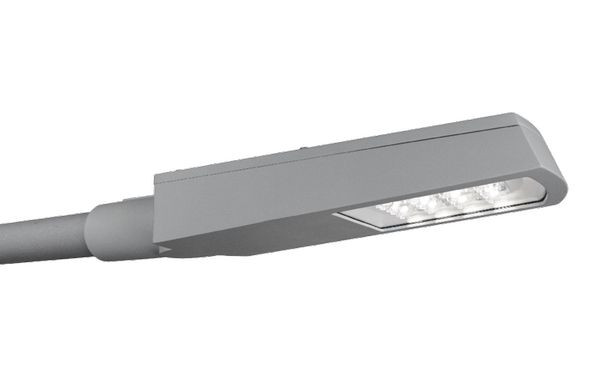LED-Mastleuchte, IP66. Gehäuse aus Druckgussaluminium, Front aus gehärtetem Glas. Basis und obere Abdeckung in texturiertem Hellgrau. Direkt-asymmetrische Lichtverteilung (Multilens). Zur Montage an 60 mm Mast vorbereitet und mit 6 m Anschlusskabel vormontiert.Design: Christian Hvidt