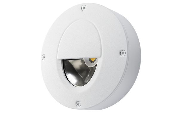 Attraktive LED-Wandleuchte. Für Außen- und Innenbereiche. Integrierter, effizienter LED-Chip, dimmbar über Phasenabschnittsdimmer. Aus pulverbeschichtetem Druckguss-Aluminium mit 10 Jahren Korrosionsschutzgarantie, Glasabschirmung. 35 mm Gesamthöhe.