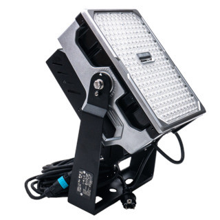 Dieses leistungsstarke Flutlicht beleuchtet mühelos Baustellen, Lagerhallen und andere große Flächen. Das korrosionsbeständige Aluminiumgehäuse schützt die Leuchte vor Staub und Strahlwasser (IP66) und macht sie vandalismussicher (IK10). Die Leuchte kann geschwenkt werden, um das Licht dorthin zu richten wo es benötigt wird. Zwei Griffe ermöglichen einen einfacheren Transport. Dieser Scheinwerfer strahlt ein leistungsstarkes (75.000 Lumen) tageslichtweißes Licht (6000K) in einem engen Abstrahlwinkel von 60° aus. Dies ermöglicht eine gleichbleibende Lichtleistung auch in großen Höhen, Ideal für Lichtmasten zum Beispiel auf Baustellen oder auf Kranen. Der Scheinwerfer wird über das mitgelieferte 12m lange Anschlusskabel H07RN-F 3G 1,5mm² mit Strom versorgt. Das modulare Design und die hochwertigen Komponenten sorgen für eine lange Lebensdauer und hohe Kosteneffizienz. Die LED-Chips sind von Philips Lumileds und es werden Netzteile von Inventronics verwendet. Dieser Scheinwerfer hat eine Leistungsaufnahme von nur 500W und entspricht damit der Leuchtleistung von 1000 W HQI-Scheinwerfern.