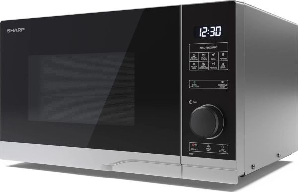 10 Mikrowellen-Leistungsstufen, 8 Automatikprogramme einschl. Auftaufunktion, Drehknopfsteuerung und Touch-Bedienfeld, Display mit Tageszeitanzeige und Timer, LED-Garraumbeleuchtung, Drehteller, Energiesparmodus, Kindersicherung