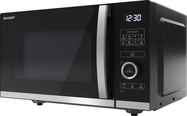 10 Mikrowellen-Leistungsstufen, 8 Automatikprogramme einschl. Auftaufunktion, Drehknopfsteuerung und Touch-Bedienfeld, Display mit Tageszeitanzeige und Timer, LED-Garraumbeleuchtung, Flachbett-Garraum, Energiesparmodus, Kindersicherung