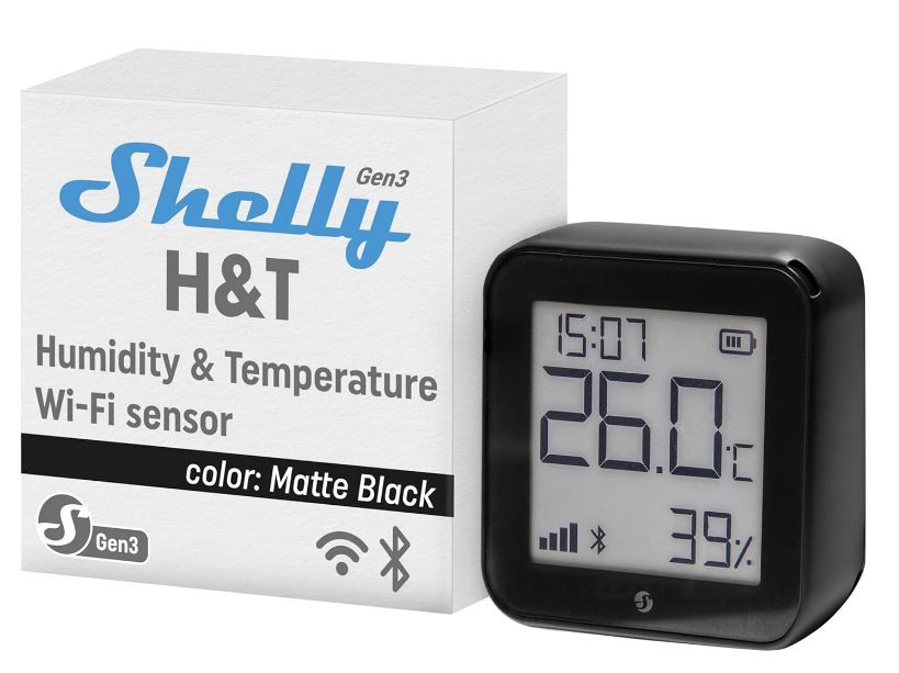 | Kurzbeschreibung | Shelly · Plug & Play · "H&T Gen. 3 Matte Black" · Temperatur- & Feuchtigkeitssensor · WLAN · BT · USB C / Batterie (n.e.) |