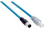 Steckverbinder und Leitungen, Industrial-Ethernet-Leitungen und Feldbusleitungen, YM2D24-100EB2MRJA4, Anschlussart Kopf A: Stecker, M12, 4-polig, gerade, D-codiert, Anschlussart Kopf B: Stecker, RJ45, 8-polig, gerade, Signalart: Ethernet, PROFINET, Leitung: 10 m, 4-adrig, AWG26, PVC, Beschreibung: Ethernet, PROFINET, geschirmt