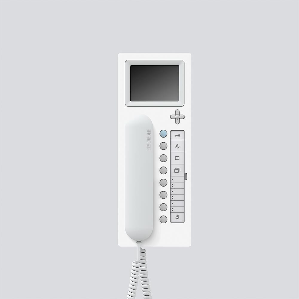 Access Haustelefon mit Türöffnertaste und 7 weiteren Tasten mit 2-farbiger Status-LED. Alle Tasten sind frei programmierbar. Das Display zeigt die grafische Menüoberfläche, jedoch kein Kamerabild. Upgrade zur vollwertigen Videostation möglich.