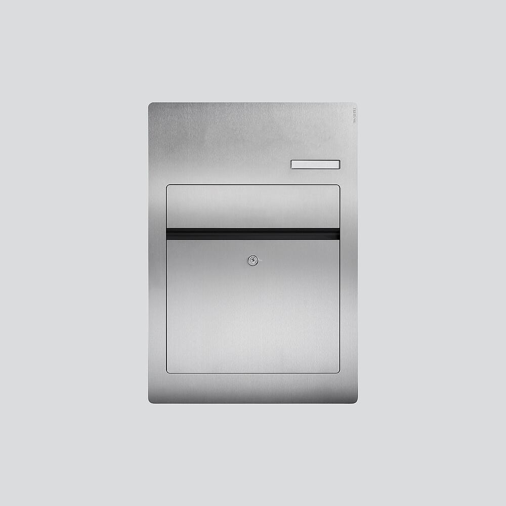 Siedle Briefkasten mit Folienschrift der Straße und Hausnummer mit Namensschild. Für das Ein- und Mehrfamilienhaus zur Aufputz- und Unterputzmontage geeignet. Dem Briefkasten liegt ein Gutschein zur Folienbeschriftung bei.