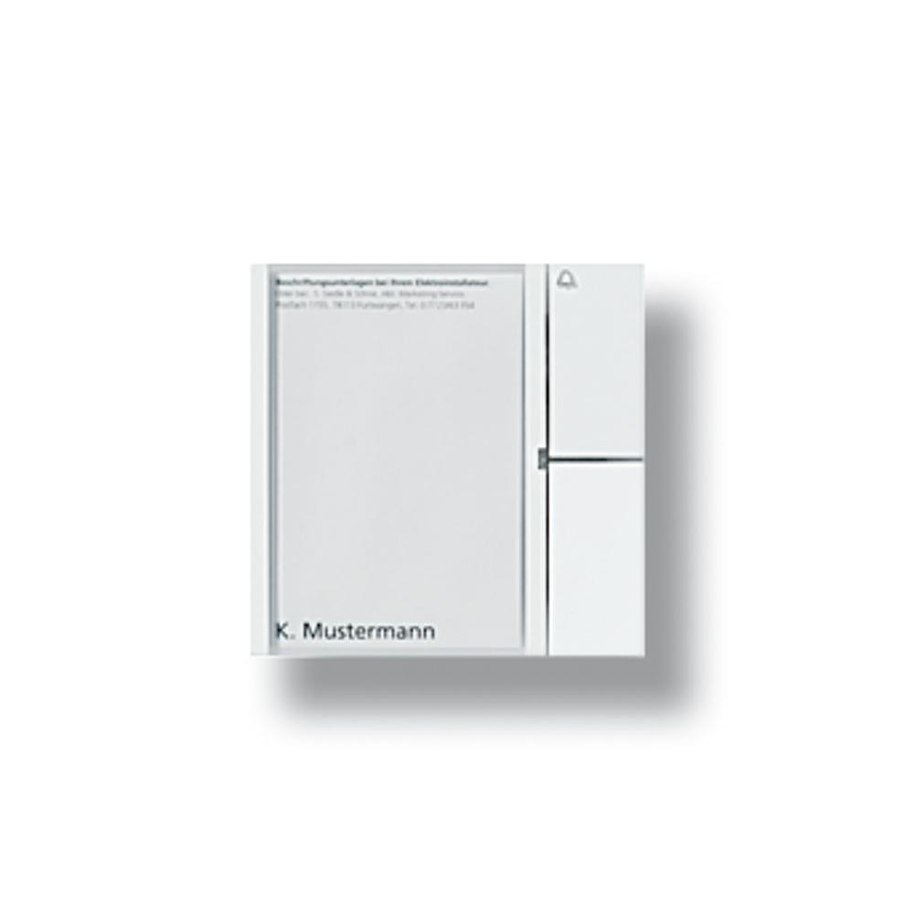 Bus-Tasten-Modul mit Namensschildtasche und 1 separaten Ruftaste mit Glockensymbol.