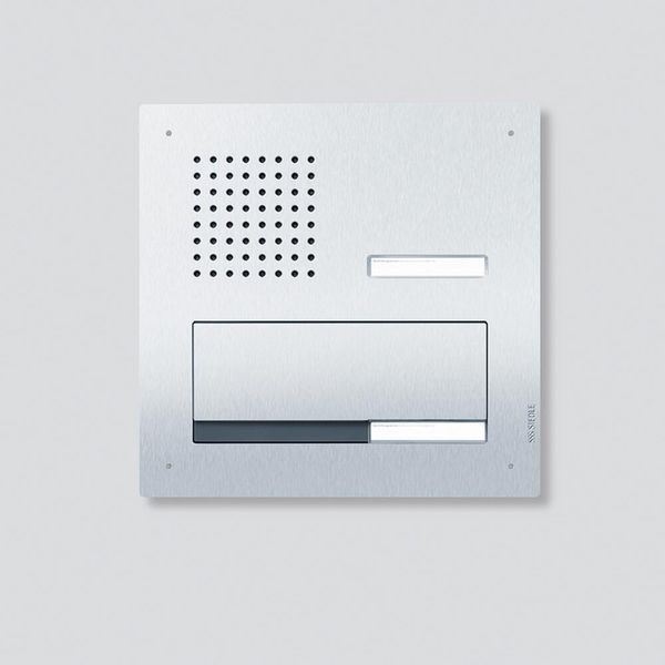 • 1 Ruftaste mit hinterleuchtetem Namensschild, frontseitig auswechselbar, akustische Rückmeldung beim Betätigen einer Ruftaste aktivierbar
