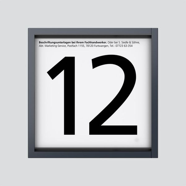 Informations-Modul für die kompakte Darstellung von Informationen aller Art (z. B. Hausnummer, Logo, Öffnungszeiten), hinterleuchtete Beschriftung wechselbar.