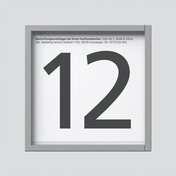 mit Kassette und Beschriftungsfeld (91 x 84 mm), für Hausnummer, Piktogramme, Geschäftszeiten etc. hintergrundbeleuchtet mit LED 12 V AC 25 mA.
