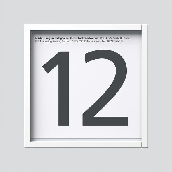 mit Kassette und Beschriftungsfeld (91 x 84 mm), für Hausnummer, Piktogramme, Geschäftszeiten etc. hintergrundbeleuchtet mit LED 12 V AC 25 mA.